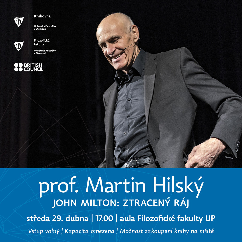 Na rozdíl od dvou předchozích návštěv naší univerzity se M. Hilský tentokrát nebude věnovat překladu děl Williama Shakespeara, ale svému nedávno vydanému překladu Ztraceného ráje (v originále Paradise Lost) Johna Miltona.